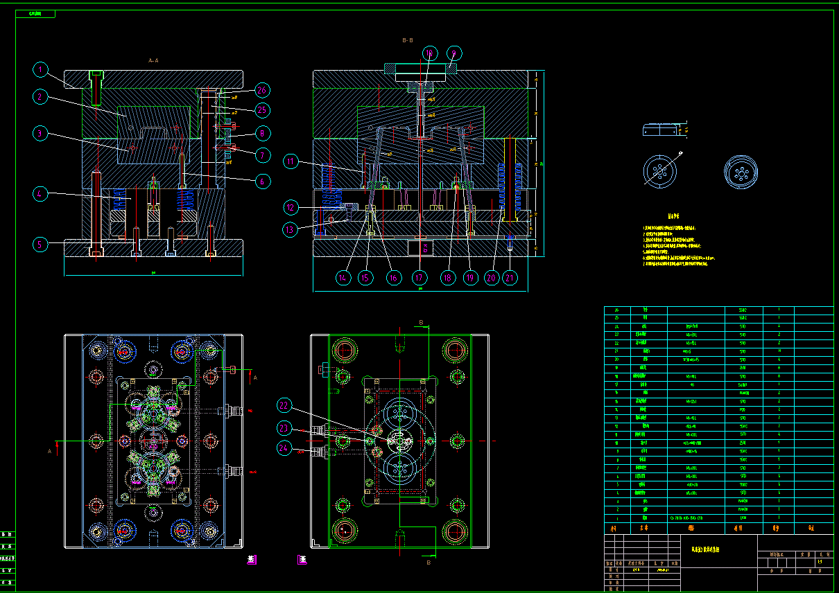 本设计分析了塑件的结构,提出了模具设计的关键点,设计了模具的整体结构。根据塑件分型面的位置,设计了推件板和斜顶杆的推出结构,零件采用了双分型面的侧浇口,提高了零件的外面质量。通过对塑件进行工艺的分析及其结构分析,从产品结构工艺性,具体模具结构出发,对模具的浇注系统、模具成型部分的结构、顶出系统、注射机的选择及有关参数的校核都有详细的设计。该模具一模两腔,采用顶针顶出结构。经过生产验证,该模具结构合理,动作可靠。