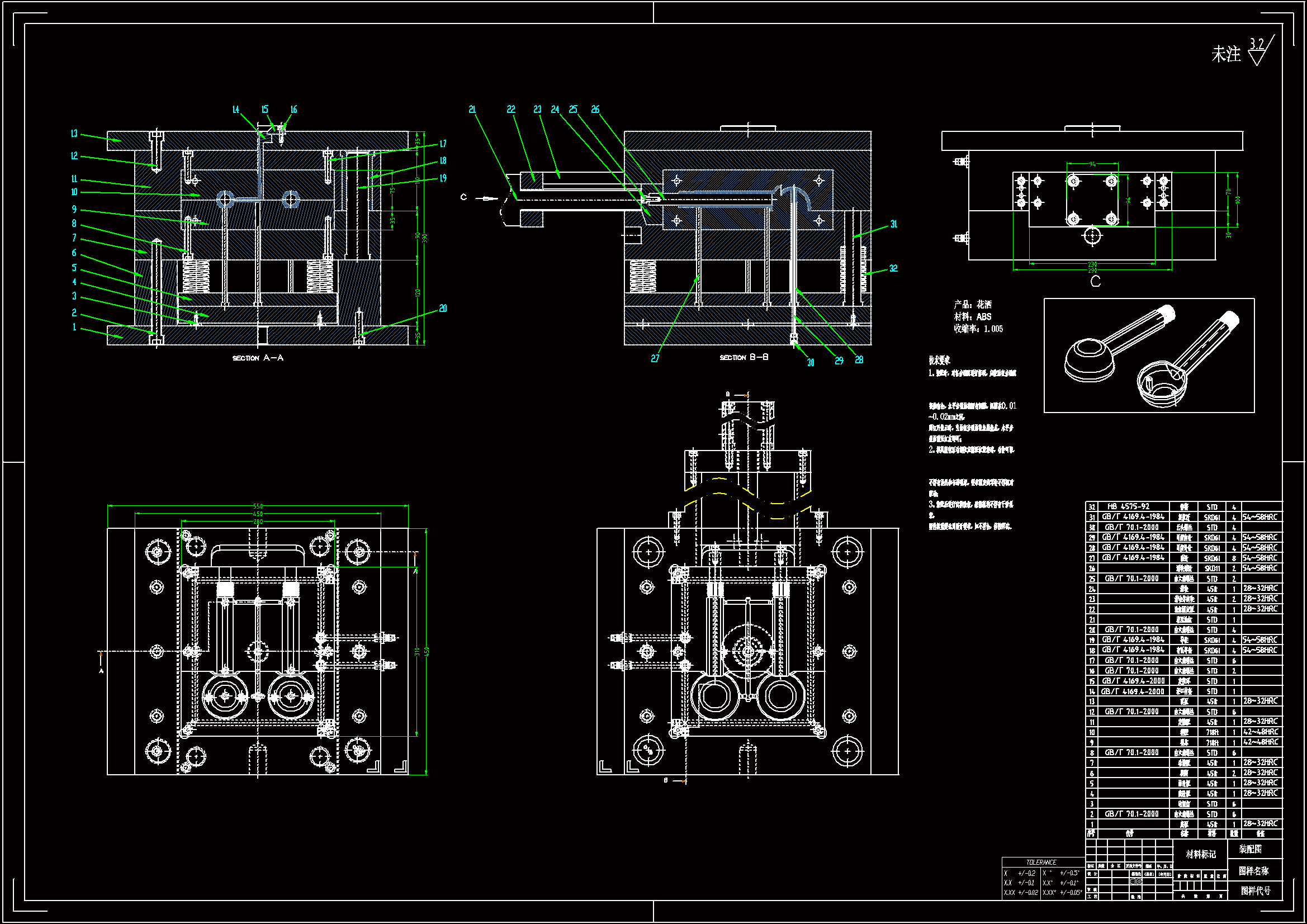 《花洒注塑模具设计》是编写者两个月以来所编写的设计说明书。主要介绍:注射模的整个过程,包括成型零部件、推出机构、流道等一些设计。在书写过程中,通过一个月的时间对原始资料进行搜集,充分考虑模具的各种结构并和指导老师及同学之间进行讨论,最终选择了说明书所写的模具结构。 本文的资料大多是编写者结合三年所学的各方面的理论知识完成的,包括机械制图、公差与配合、工程力学、机械设计、注射模具成型、工程材料等;一部分是通过查手册所得;还有少部分是同学之间的交流和自己三年的实习总结。 关键词:三板模;侧浇口;滑块
