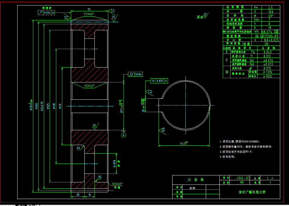 设计带式输送机的传动系统,采用两级圆柱直齿齿轮减速器传动。