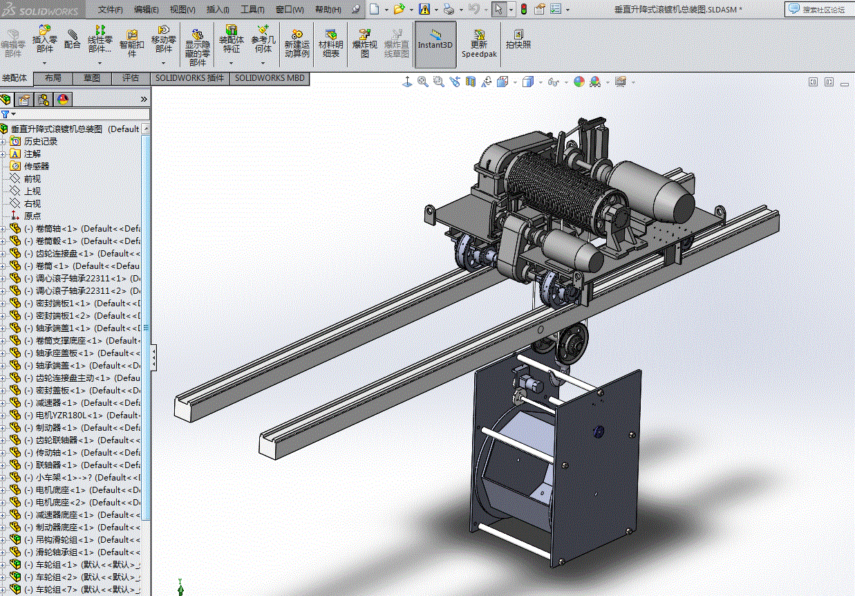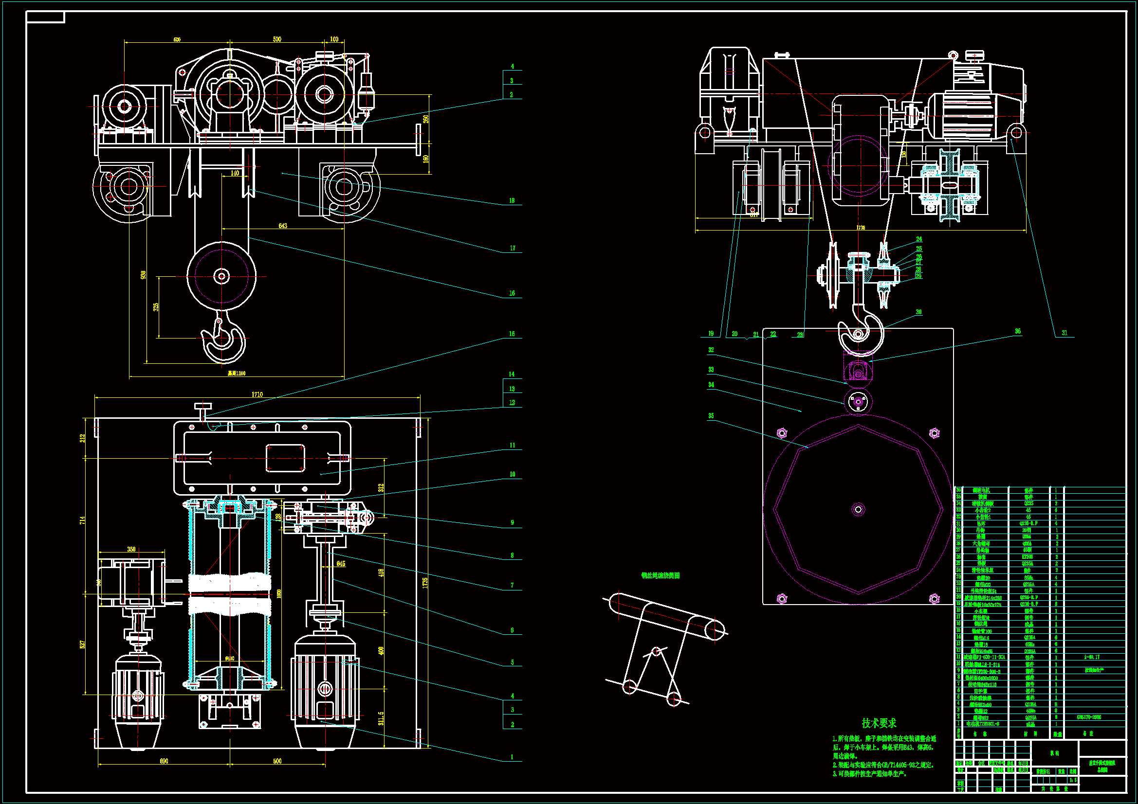 此次设计是垂直升降式滚镀机的设计。首先针对于滚镀机的概述查阅的大量的有关文献,总结出国内外电镀工艺的发展趋势以及滚镀机的特点与分类。并根据设计参数及设计要求制定出垂直升降式滚镀机的总体设计方案和一些主要零部件的初步选择。其次通过对起重机的小车起升机构部分的总体设计计算,特别是卷筒组的设计计算以及电动机、联轴器、减速器、缓冲器、制动器的选用,完成了起重机的小车起升机构机械部分的设计,并绘制出一张A0垂直升降式滚镀机总装图、一张A0卷筒组部件图、一张A2卷筒零件图等图纸。最后进行了小车及起升机构的结构设计,通过一系列的设计,满足了起重量5t、起升高度为2m的设计要求,并且整个起升过程比较平稳,且小车起升机构结构简单、安全可靠、拆装方便、维修容易且经济实用。