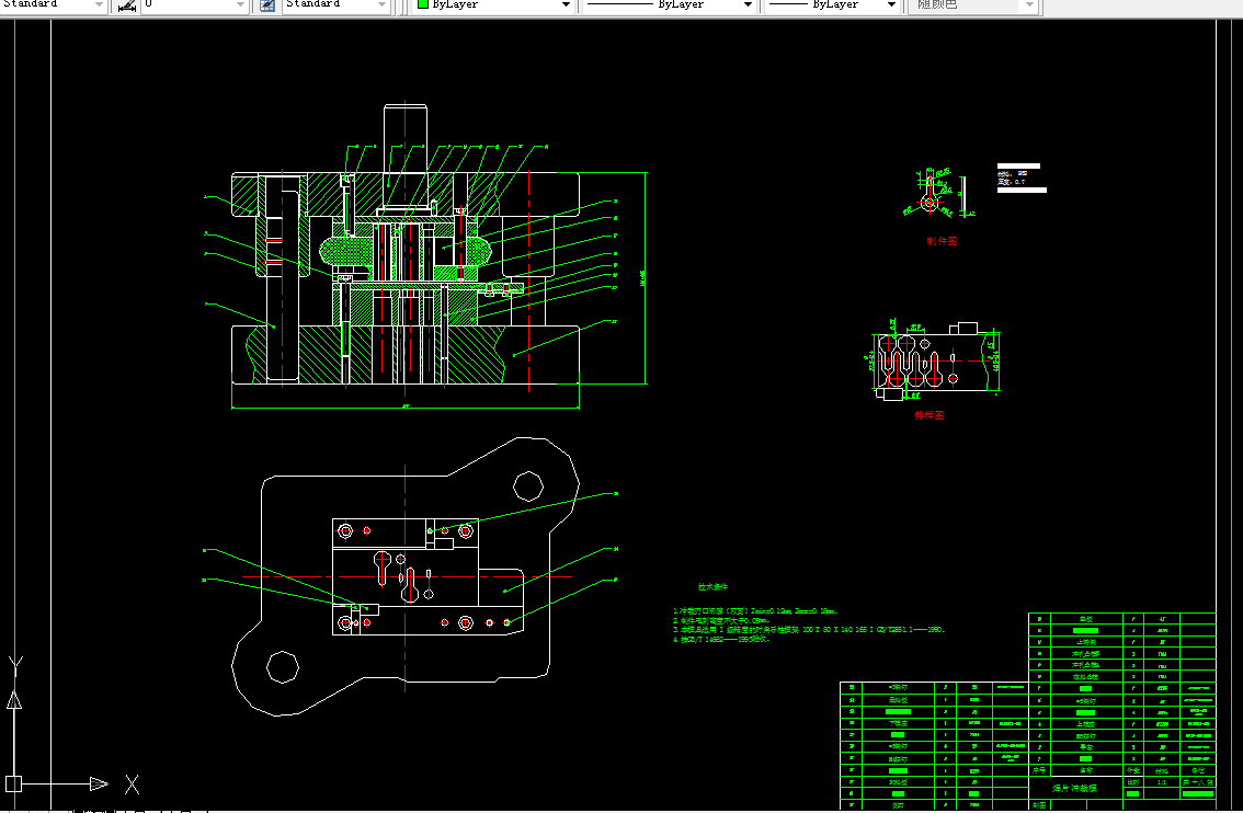 本说明书主要是针对焊片的设计,本次设计采用了冲孔落料级进模,也针对了非标准零件的设计。其中,在第一、二章