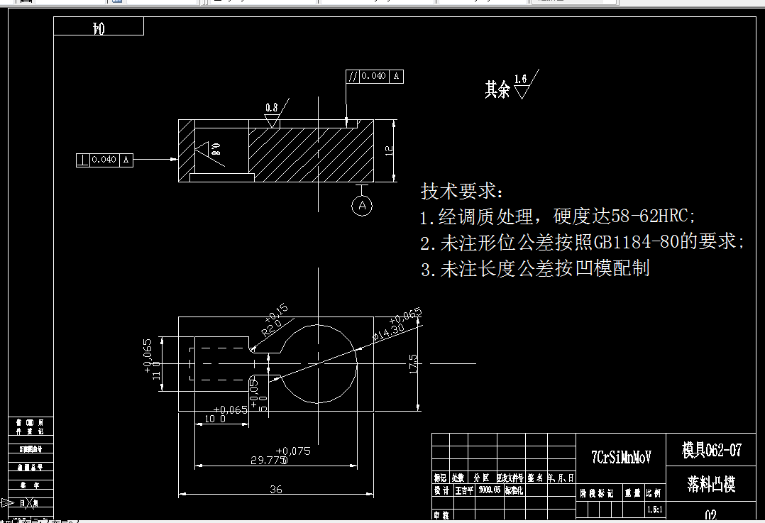 件的尺寸,从模具设计到零部件的加工工艺以及装配工艺等进行详细的阐述,并应用CAD进行各重要零件的设计。