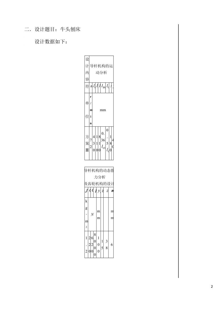牛头刨床是一种用于平面切削加工的机床,如图1(a)。电动机经皮带和齿轮传动,带动曲柄2和固结在其上的凸轮8。刨床工作时,由导杆机构2-3-4-5-6带动刨头6和刨刀7作往复运动。刨头右行时,刨刀进行切削,称工作行程,此时要求速度较低并且均匀,以减少电动机容量和提高切削质量;刨头左行时,刨刀不切削,称空回行程,此时要求速度较高,以提高生产率。为此刨床采用有急回作用的导杆机构。刨刀每切削完一次,利用空回行程的时间,凸轮8通过四杆机构1-9-10-11与棘轮带动螺旋机构(图中未画),使工作台连同工件作一次进给运动,以便刨刀继续切削。刨头在工作行程中,受到很大的切削阻力(在切削的前后各有一段约0.05H的空刀距离,见图1(b),而空回行程中则没有切削阻力