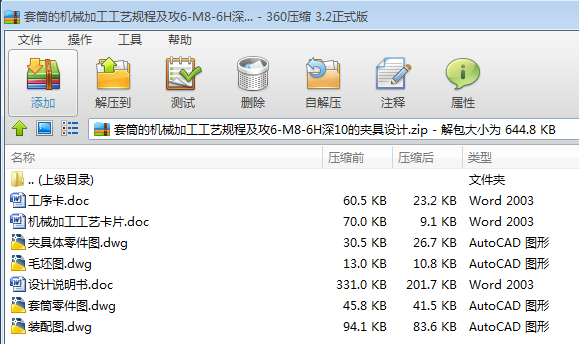 套筒的机械加工工艺规程及攻6-M8-6H深10的夹具设计是包括零件加工的工艺设计、工序设计以及专用夹具的设计三部分