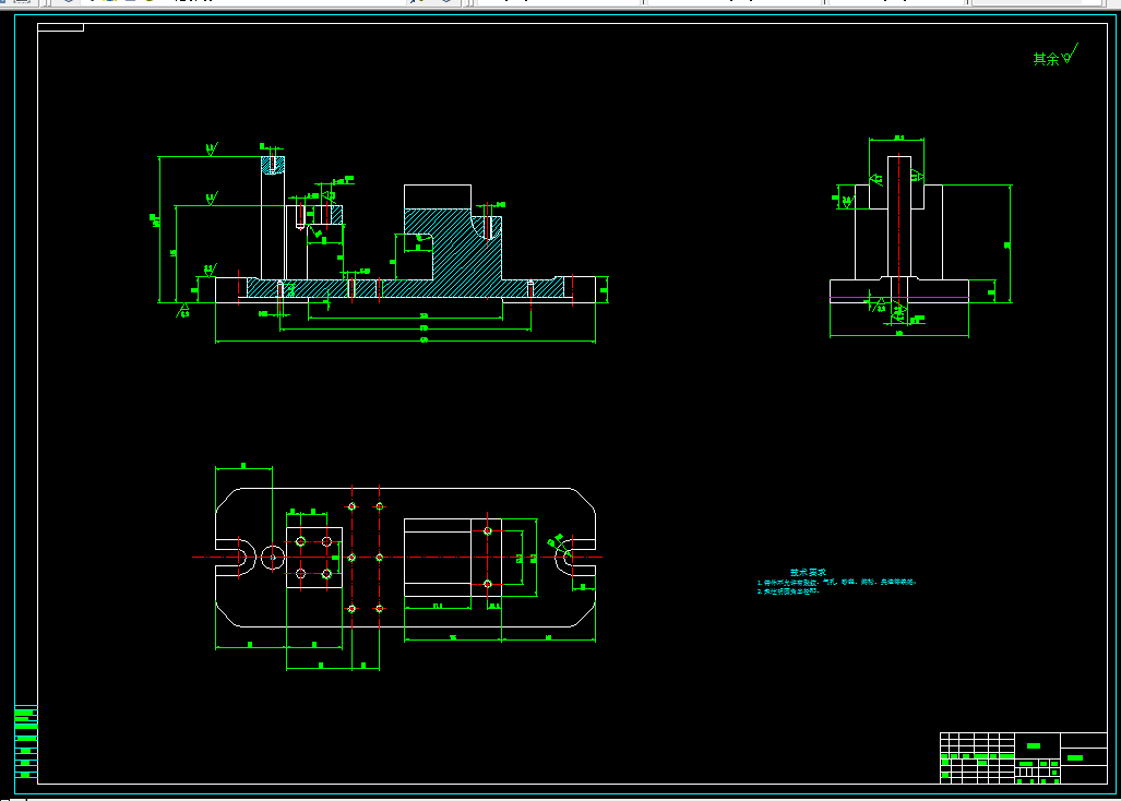 轴支架零件的工艺规程及其铣斜面的工装夹具设计是包括零件加工的工艺设计、工序设计以及专用夹具的设计三部分。在工艺设计中要首先对零件进行分析,了解零件的工艺再设计出毛坯的结构,并选择好零件的加工基准,设计出零件的工艺路线;接着对零件各个工步的工序进行尺寸计算,关键是决定出各个工序的工艺装备及切削用量;然后进行专用夹具的设计,选择设计出夹具的各个组成部件,如定位元件、夹紧元件、引导元件、夹具体与机床的连接部件以及其它部件;计算出夹具定位时产生的定位误差,分析夹具结构的合理性与不足之处,并在以后设计中注意改进。