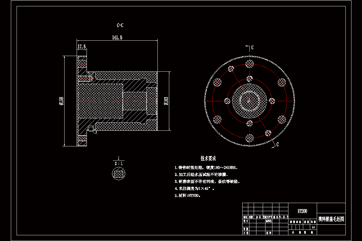 制定填料箱盖的加工工艺,设计钻6-Ф13.5孔的钻床夹具,运用机械制造工艺学课程中的基本理论以及在生产实习中学到的实践知识,正确地解决一个零件在加工中的定位,夹紧以及工艺路线安排,工艺尺寸确定等问题,保证零件的加工质量。提高结构设计能力。通过设计夹具的训练,获得根据被加工零件的加工要求,设计出高效,省力,经济合理而能保证加工质量的夹具的能力。学会使用手册以及图表资料。掌握与本设计有关的各种资料的名称,出处,能够做到熟练的运用。
