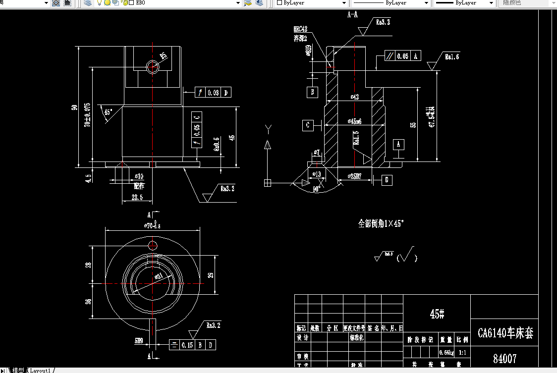 虽说整体内容从任务书上分析出来,但整个设计过程也是困难重重,最简单的也就是照着所给图片绘制出CA6140车床套零件图,其他的设计过程刚开始我是一点头绪都没,最后通过资料《机制制造工艺学课程设计指导书》才明白整个设计的顺序步骤,尽而完成整个设计。
