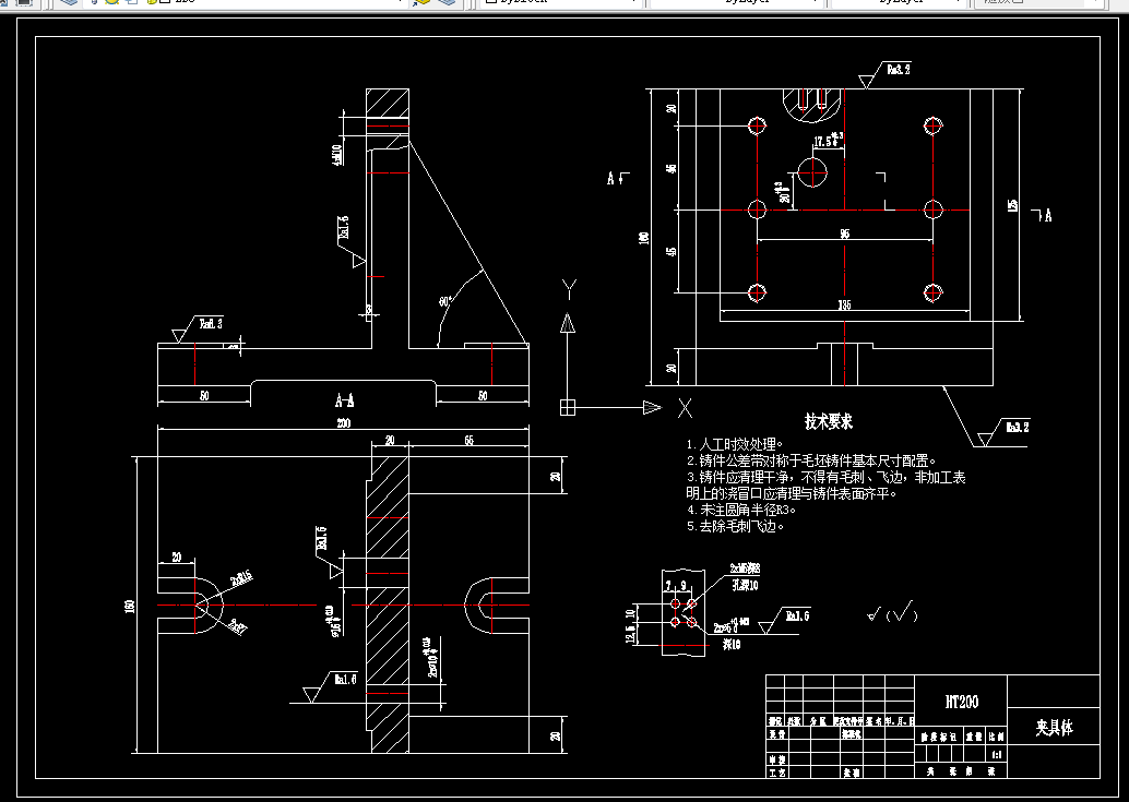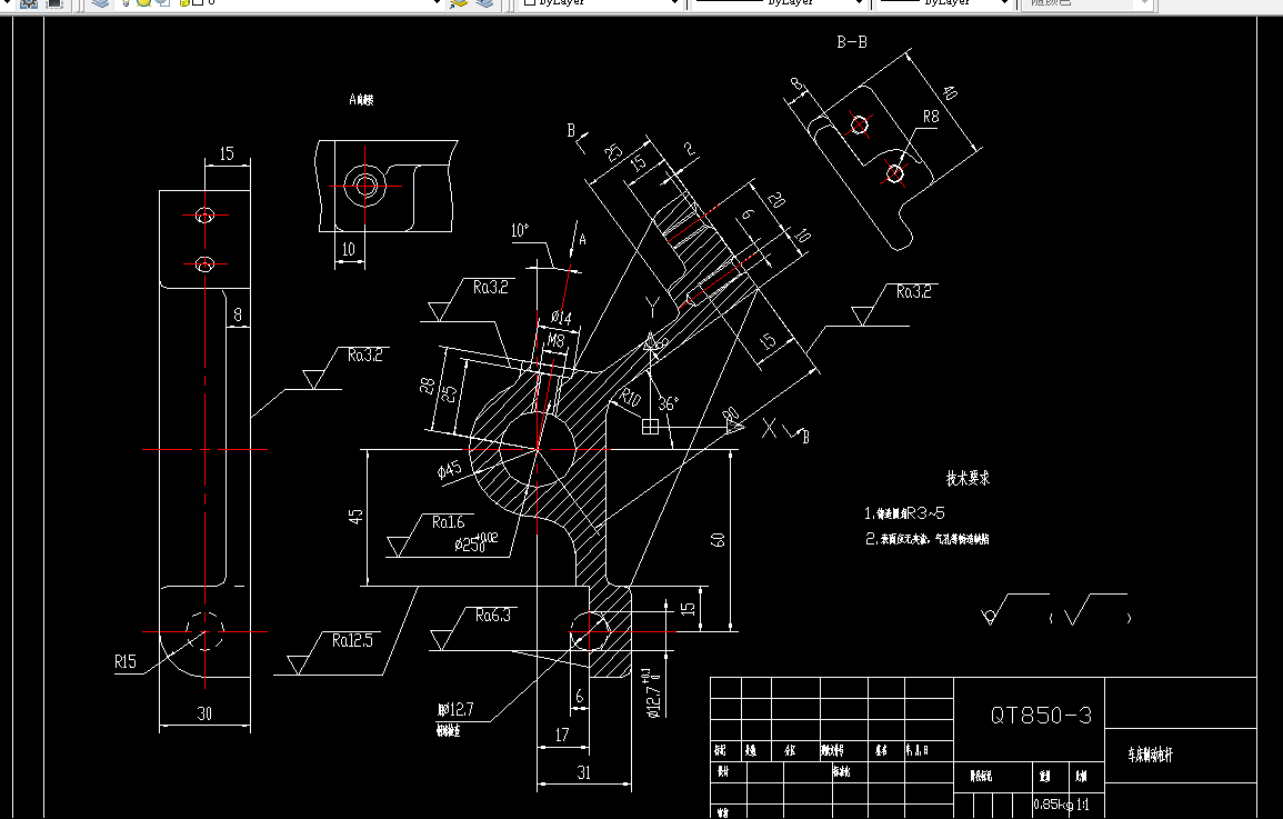我被分配的任务为车床制动器上的主要配件之一的杠杆,从杠杆零件图上可以看出,右端面、40×30端面、Φ25孔和Ф14端面为精度最高的几个地方。而从我的任务书上也可以看出,此所分配的毕业设计大体上分为三部分,第一部分为车床制动杠杆工艺设计,主要介绍杠杆的特点及加工;第二部分为夹具部分,此部分主要介绍夹具,包括定位元件、夹紧机构和对刀装置;第三部分为Ug三维图的绘制。