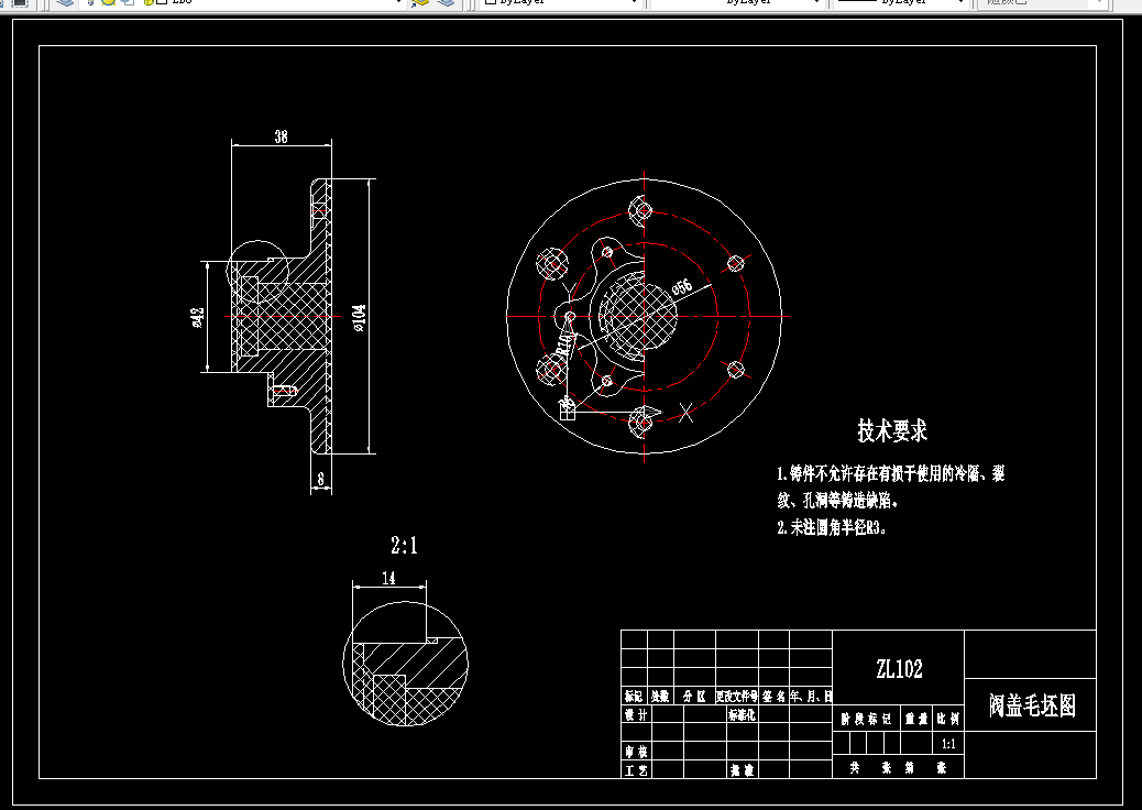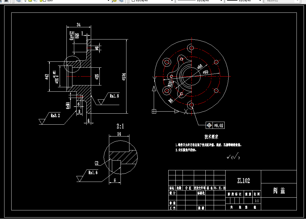 此次毕业设计我分配的题目为:阀盖的制造工艺与生产规划,从阀盖的零件图结构可以看出,Φ104右端面粗糙度Ra1.6、Ф35H7孔粗糙度Ra1.6,这几处为阀盖精度最高的地方。利用Siemens NX 6.0软件进行产品的三维实体造型等方式进一步了解零件结构特点,充分利用自动化切削加工技术优势对该产品的工艺规程进行重新设计,在保证质量的同时力求提高效率、降低成本。
