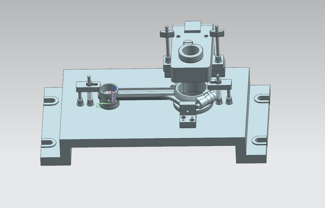 我所设计的要求:零件名称:柴油机连杆,材料45钢,在坐标镗床T4163上镗Φ70孔的夹具,大批量生产。由所给的资料知,首先查找柴油机连杆相关资料,模锻件的形状要求,对柴油机连杆结构形状进行分析, 接着对产品结构和工艺性进行分析,编写工艺(参考《典型零件工艺分析与加工》、《机械切削工人实用手册》),然后在工艺内选择加工Φ70孔工序设计专用夹具,并拆画非标零件图(参考《机床夹具设计与使用一本通》)。