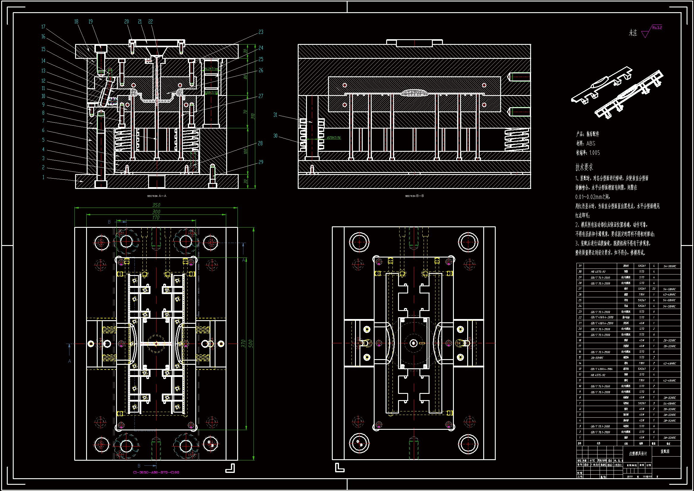 本次设计中,通过对家用拖布配件塑件的注塑模具设计,建立了模具基本理论知识系统,完善了设计制造流程,深化了软件操作水平,强化了理论计算校核方式,同时为未来的工作做好设计技术储备。本次设计首先根据塑件的外形结构特点,选择了合适的热塑性高分子材料类型,分析注塑工艺,进行了模具型腔出模数量的确定,完成了流道浇注系统的设计,进行模具温度调节冷却水道设计,对于成型零件的设计方面,选择了分型面,确定了型芯和型腔的结构设计和成型尺寸的计算与校核。顶出系统的合理布局能够实现塑件的顺利脱模。选用了标准GB模架系统来实现标准模块设计与制造,缩短制造周期。在完成模具设计之后,通过查注塑模具设计指导手册,选择了相关注塑机,确定了注塑机基本型号,根据注塑机参数表进行校核与计算,包括注塑量,注塑压力,锁模力,安装尺寸等数据。最终完成后的注塑模具能够实现全自动化生产,根据生成经济性选择对应的注塑机来实现。整套模具结构巧妙,工作可靠,维修和制造成本合理,大量采用标准化模块与零件,能够满足于现在企业生产实践