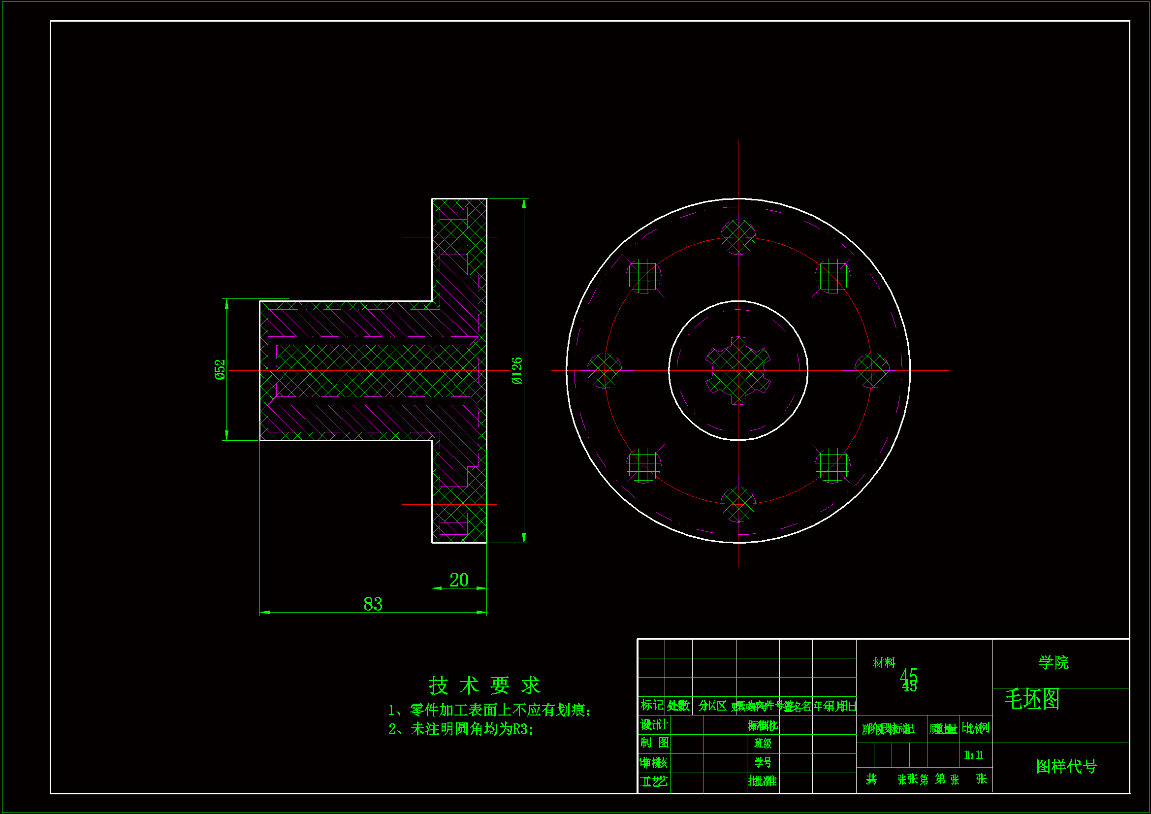 矩形齿花键套机械加工工艺及花键拉刀设计 是包括零件加工的工艺设计以及专用夹具的设计、花键拉刀三部分。在工艺设计中要首先对零件进行分析,了解零件的工艺再设计出毛坯的结构,并选择好零件的加工基准,设计出零件的工艺路线;接着对零件各个工步的工序进行尺寸计算,关键是决定出各个工序的工艺装备及切削用量;然后进行专用夹具的设计,选择设计出夹具的各个组成部件,如定位元件、夹紧元件、引导元件、夹具体与机床的连接部件以及其它部件;计算出夹具定位时产生的定位误差,分析夹具结构的合理性与不足之处,并在以后设计中注意改进。