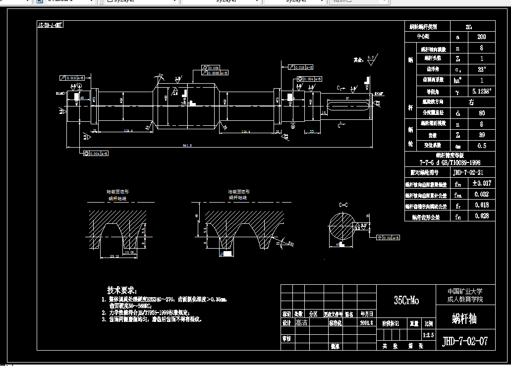JHD—7型回柱绞车的传动系统采用两级传动,包括蜗轮蜗杆齿轮传动、圆柱齿轮传动,在设计过程中采用承载能力大的圆弧蜗轮蜗杆;而且采用了开式齿轮传动,大大简化了机械部分的传动系统,便于安装和拆卸,结构布置紧凑、合理。