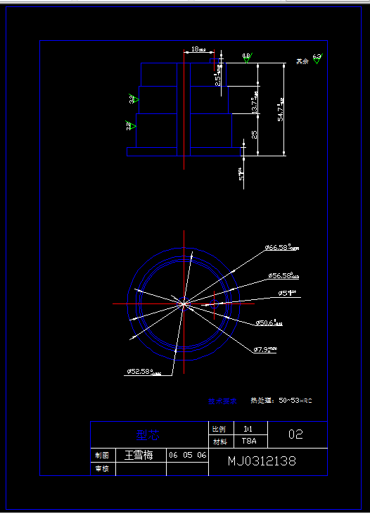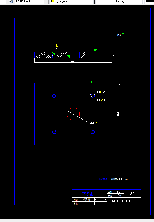 为了我的设计更加简明易懂,在设计中,我用了CAD软件画了七、八张零件图,安插在设计任务书中。最后画出一端盖塑料模装配图和主要工作零部件零件图若干张。