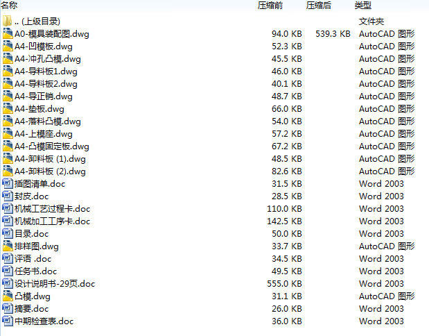 本设计运用冲裁工艺及模具设计的基础知识,首先分析了板材的性能要求,为选取模具的类型做好了准备;然后计算了冲裁件的冲裁力,便于选取压力机吨位及确定压力机型号;最后分析了冲裁件的特征,便于确定模具的设计参数、设计要点及卸件装置。