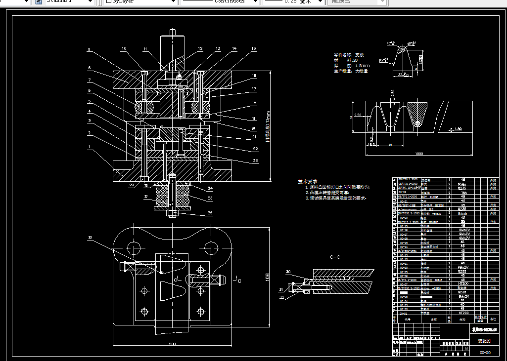 本设计运用了冲裁工艺与模具结构设计基础知识,首先了解了支件所用的材料及生产批量;再次分析支件的形状及所要达到的精度要求,确定生产工艺方案及模具的结构类型;计算确定模具设计参数,及卸料与推荐装置的设置;最终制定模具的加工工艺规程及模具的装配、调试过程。
