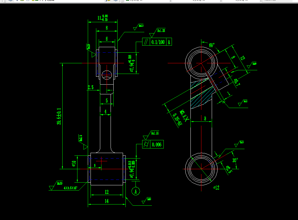 连杆件的课程设计难点在于零件工艺分析及夹具设计。工艺分析:连杆材料HT200,依据《机械制造工艺与夹具课程设计指导》、《典型零件工艺分析与加工》,首先选择连杆的毛坯,再确定粗、精基准、各加工表面的加工方法及加工余量,接着制订出合理工艺路线,计算各工序的工时。连杆件的夹具设计,依据《机床夹具设计》和专业方面的教材,六点定位原理确定合理的定位方式,然后根据常用定位元件,选择合理的定位元件,再依据夹紧装置、常用夹紧机构,选择合理的夹紧方式,接着根据对刀及引导装置,选择满足要求的引导元件,最后合理的把这些定位元件、夹紧元件和引导元件排布在夹具体上,绘制出装配图。通过这次连杆的课程设计,不但使我对这几年所学进行了一次复习、巩固,更是通过查阅相关资料,丰富了所学,对以往的不足进行补充。
