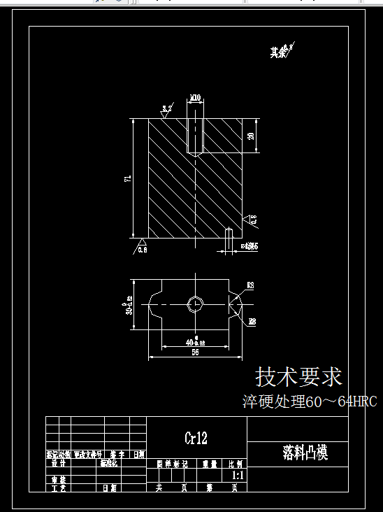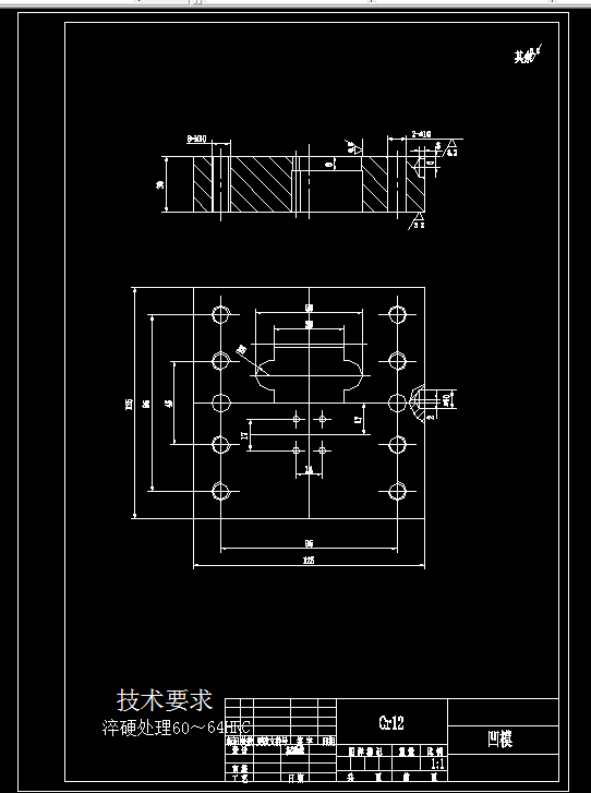 通过对课题的冲压工艺的分析及模具零件的计算后,首先对主要的工作零件以及非标零件进行二维图的绘制,并且绘制本套模具的装配图;其次对主要工作零件的加工进行工艺卡片的编制。
