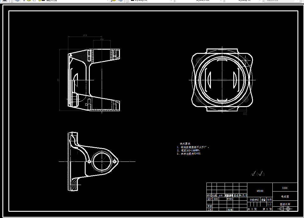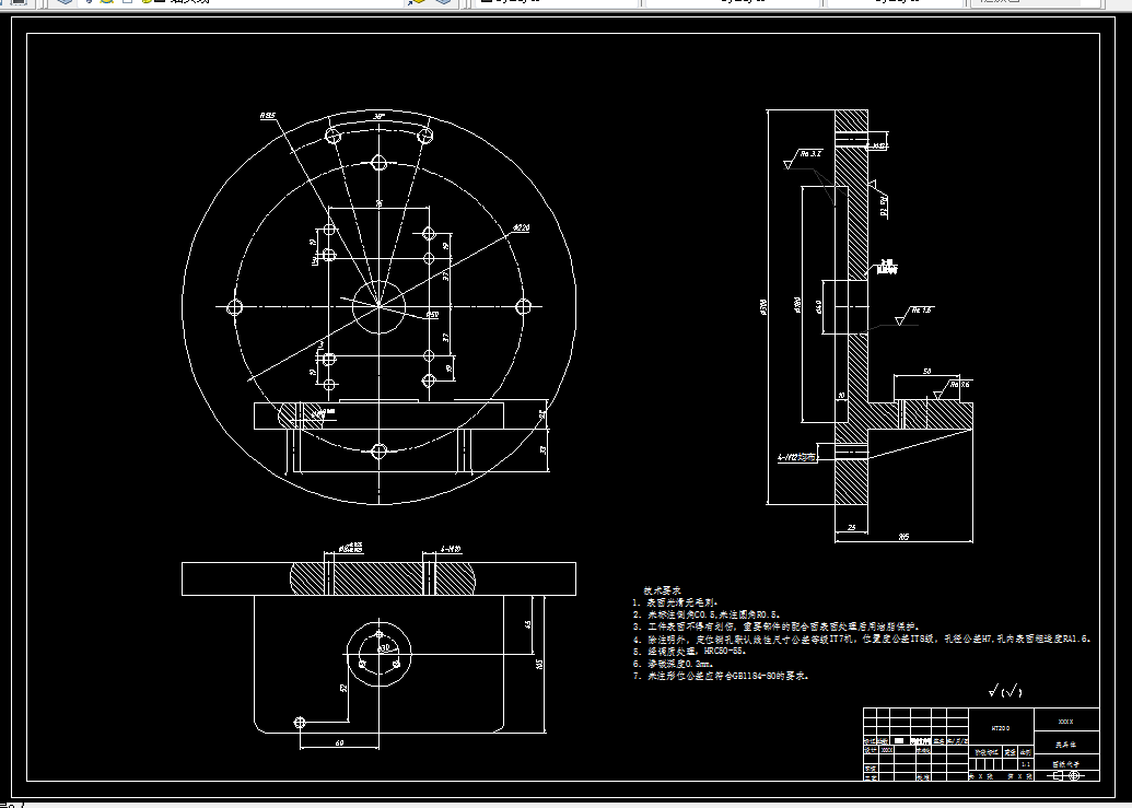 凸缘叉加工工艺规程及夹具设计是包括零件加工的工艺设计、工序设计以及专用夹具的设计三部分。在工艺设计中要首先对零件进行分析,了解零件的工艺再设计出毛坯的结构,并选择好零件的加工基准,设计出零件的工艺路线;接着对零件各个工步的工序进行尺寸计算,关键是决定出各个工序的工艺装备及切削用量;然后进行专用夹具的设计,选择设计出夹具的各个组成部件,如定位元件、夹紧元件、引导元件、夹具体与机床的连接部件以及其它部件;计算出夹具定位时产生的定位误差,分析夹具结构的合理性与不足之处,并在以后设计中注意改进。