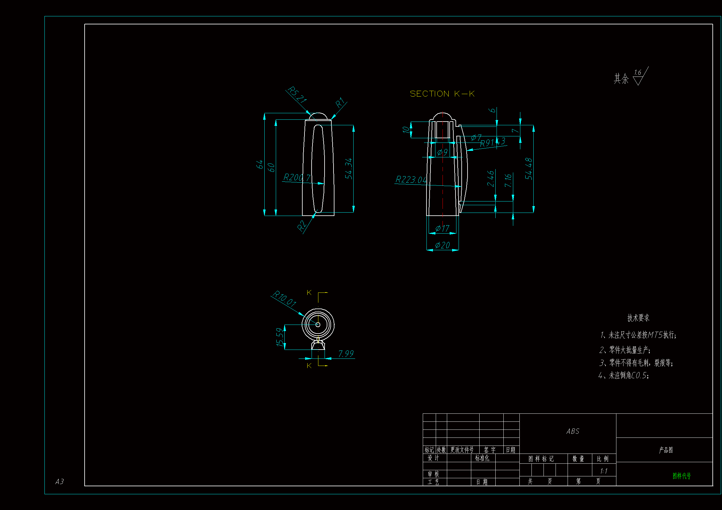独立完成所给塑件的注塑模具的设计。确定成型工艺方案,设计合理的模具结构;合理的选用模具材料和注塑机,具有分析解决注塑成型工艺中质量问题的能力,内容上注重理论与实践相结合,全方位地表达模具的工作情况,模具的设计要有效地体现出“以应用为目的”的特色,实用价值要高。