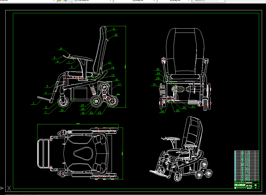 本设计就将对可上下楼梯的电动轮椅进行设计,以满足双腿残疾人和老年人自动上下楼梯的功能。主要从设计方案、整体结构进行设计,包括其中的数据计算、传动系统设计、电机等外购件选型、应用环境、维护保养等方面进行系统设计。并绘出了电动轮椅的二维装配图与部分零件图。