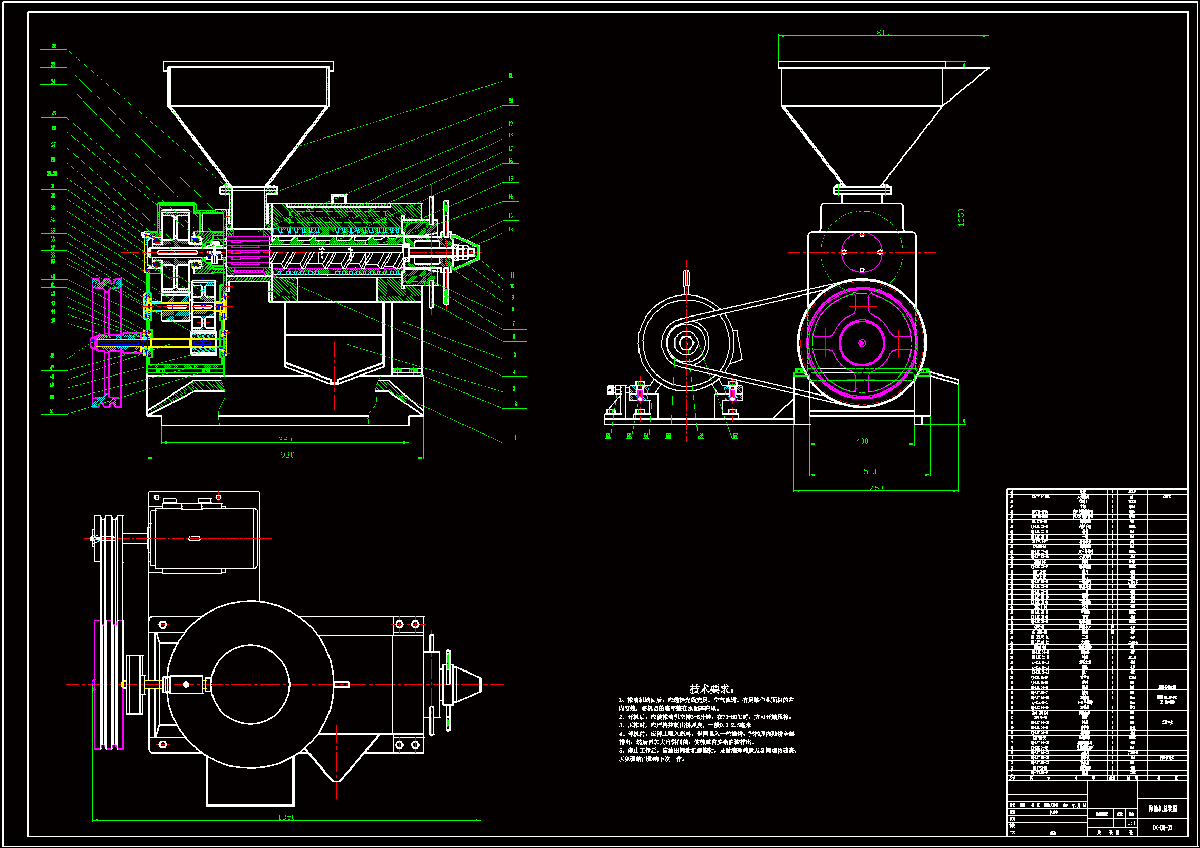 (4)对农用榨油机的传动系统、执行部件及机架设计。