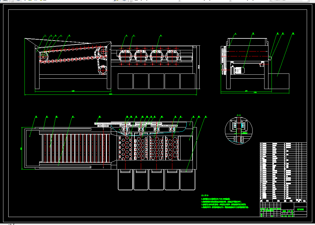 本次设计的橙子滚筒式分级机主要是根据尺寸大小对橙子筛分,以此提高对橙子的筛分精准度及效率。以我国现今的国情,不可能采用人工对橙子大小进行筛分,因为此种方式准确度及效率均极低。因此,本设计的橙子滚筒式分级机,采用多个滚筒的形式,对供料的橙子以尺寸为标准进行筛分出不同尺寸规格的橙子,提高对橙子的筛分精度及效率。