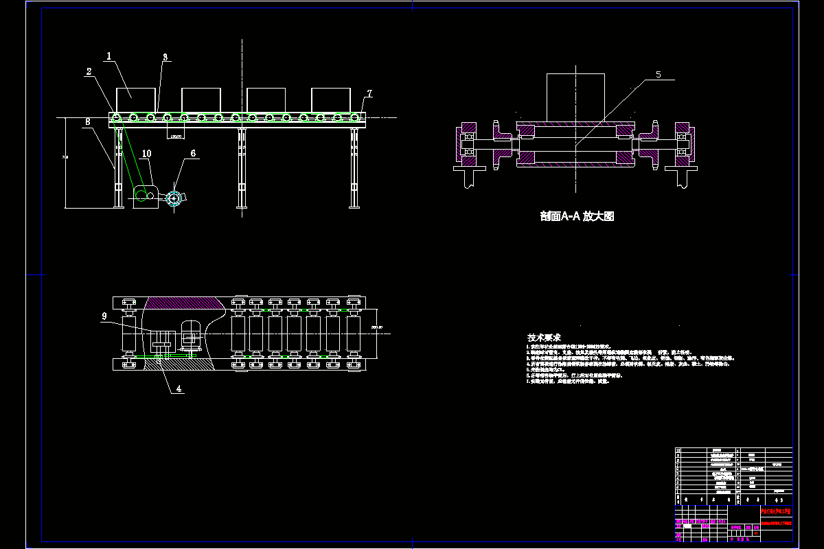 生产线传送装置是随着汽车的诞生,汽车发动机技术的发展应运而生的。发动机缸体生产线装置设计在国内研究相当久远,在我国古时候就出现了辊子输送机这种运输设备。这类设备在近几年得到了极大的发展以及大量的出现,在工业发达国家,辊子输送机的结构形式及规格品种各种各样,在各个行业都可以看到这种设备。在国内,各式各样的辊子输送机出现在各种不同的生产线,这也就体现出辊子输送机的普遍性。这说明了发动机缸体生产线传送装置有着重要的作用,但是原输送装置部分辊道采用单链式传动方式,可维护性差,辊道与传动齿轮磨损,导致辊道出现卡死现象。发动机缸体在等待加工过程中,滚轮与发动机缸体下表面摩擦,这种不断的摩擦导致缸体下表面产生质量缺陷。对于这些存在的缺陷以及对传送装置特点形式了解,对发动机缸体生产线传送装置总体进行设计,先确定辊子输送机的总体结构,熟悉总体结构后再对各个零件分析设计,各个零部件的选用得对计算零部件的参数,根据生产线传送装置所需要求,计算链传动牵引力,考虑理论存在的差距,求出辊子数目,根据理论公式求解辊子间距,直径。而后对辊子受力分析,选择其支撑架和脚。在总体方案确定,运用Auto-CAD绘制总装图和各零部件。