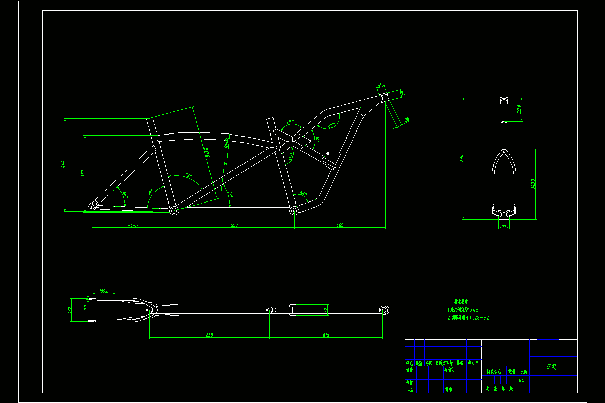 2.在结构设计上选取合理参数,保正安全性能。确定双人自行车的部件类型、尺寸、材料等参数,参照单车的结构选取零件,在设计中尽量将尺寸与单车零件相配合。规避传统双人自行车的现存弊端,使双人自行车有更加合理、稳定、安全的结构。