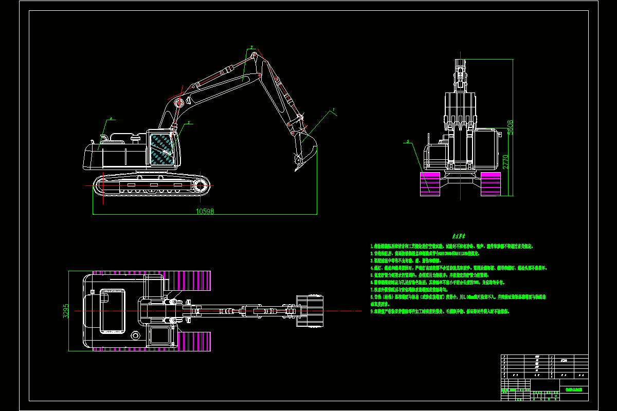 0.5M3液压挖掘机采用三组液压缸使工作装置具有三个自由度,铲斗可实现有限的平面转动,加上液压马达驱动回转运动,使铲斗运动扩大到有限的空间,再通过行走马达驱动行走(移位),使挖掘空间可沿水平方向得到间歇地扩大,从而满足挖掘作业的要求。