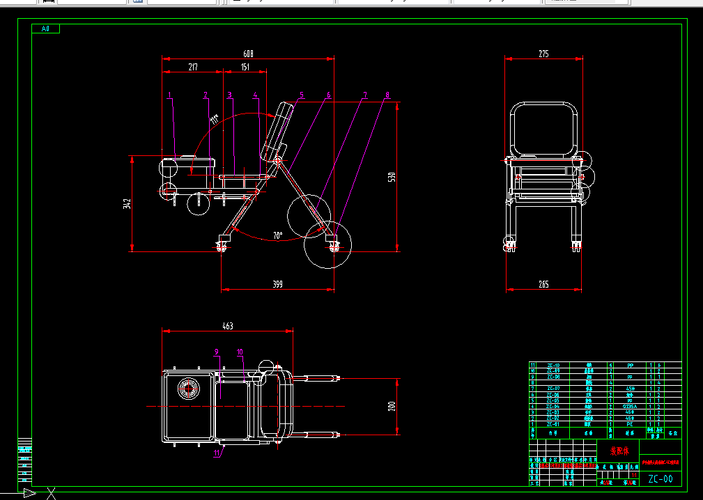 计种类的现状,经过详细的方案调查,为本次毕业设计设计出了一套实用的多功能婴儿餐桌椅。。