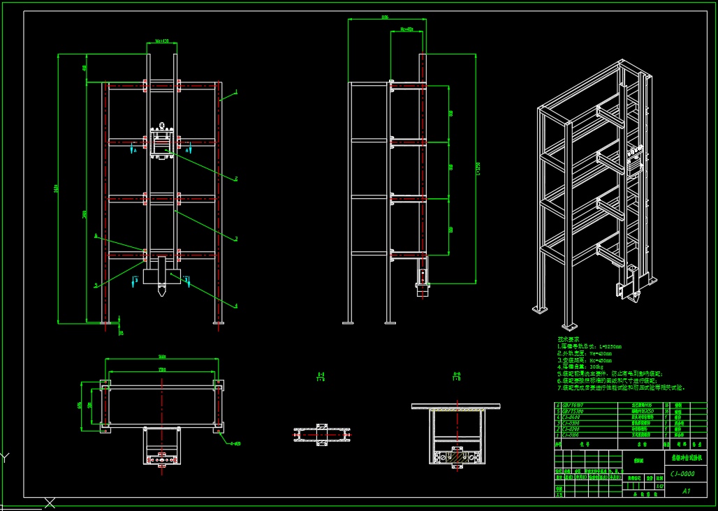 包含全部三维SW2016零部件以及装配,二维CAD(总装配图,冲击锤组件,落轨机架焊合组件)CJ001型落锤试验机是一种适用于金属材料反结构抗冲击性能测试的仪器,立式导轨架设计采用了主支架与辅助支架相结合的结构,保证了具有良好的稳定性和强度,所有支脚均采用了调节螺钉,从而方便地调节支架的垂直度。此外,整体结构均采用10号槽钢,用手工电弧焊接进行连接,使得整体性能更加可靠。基本参数:落锤导轨总长L=3250mm;外轨宽度We=430mm;落锤自重m1=300kg,安装距离Hc=450mm;