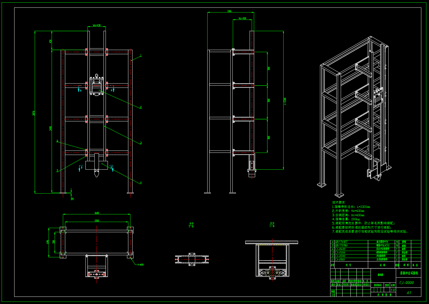 包含全部三维SW2016零部件以及装配,二维CAD(总装配图,冲击锤组件,落轨机架焊合组件)CJ001型落锤试验机是一种适用于金属材料反结构抗冲击性能测试的仪器,立式导轨架设计采用了主支架与辅助支架相结合的结构,保证了具有良好的稳定性和强度,所有支脚均采用了调节螺钉,从而方便地调节支架的垂直度。此外,整体结构均采用10号槽钢,用手工电弧焊接进行连接,使得整体性能更加可靠。基本参数:落锤导轨总长L=3300mm;外轨宽度We=430mm;落锤自重m1=295kg,安装距离Hc=450mm;