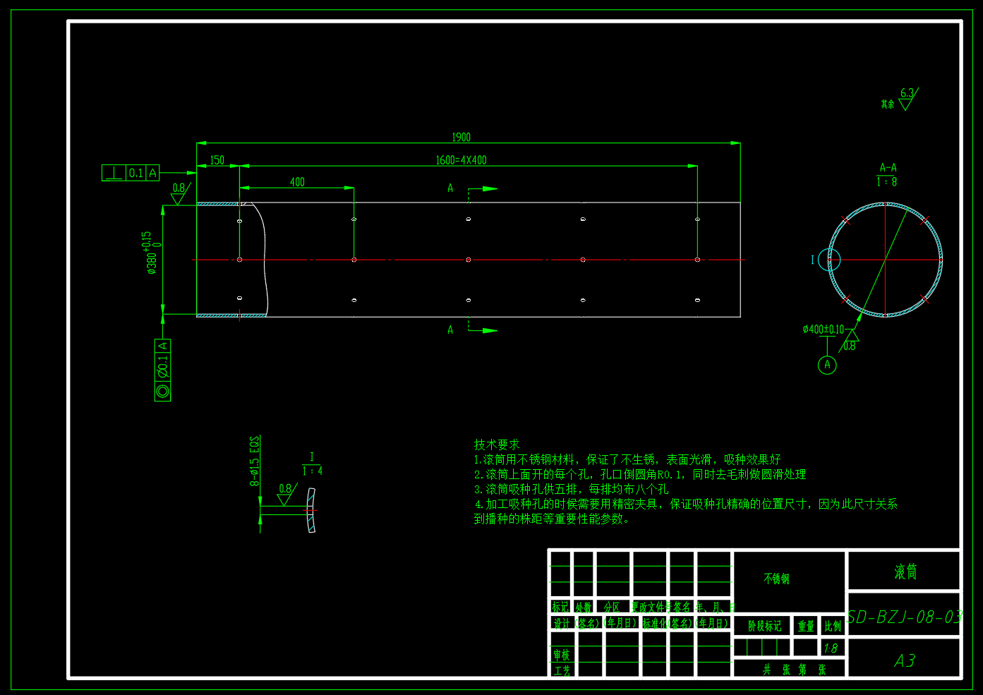 包含全部三维SW2018和二维CAD,本设计为一种新型水稻播种装置的全新设计,设计出一种适合水稻种子的吸种孔参数,保证了吸种孔的尺寸与种子相匹配,进而解决了一次吸收多个种子在播种时下种数量不固定导致的播种不均匀,不能单粒精量播种的问题。解决清种器不能全部清除种子及清种的时候损坏种子所导致的重播率高的问题。设计一种新型的清种器,采用组合式双配合清种器,其中一个用来清扫吸种孔上方的多余的种子,清扫轨迹与穴种相切的轨迹进行清扫上部种子,即保证了清扫质量,又保护种子不受到破坏;另外一个设计一种可以清扫掉下方的多余的种子,保证单粒吸附,单粒进入投种。解决因拖拉机输出动力轴进行提供链轮传动进而带动滚筒传动的转速误差大、精度低、滚筒受到拖拉机转速的影响进而导致旋转的转速不稳定导致的下种不均匀,播种不均匀问题。采用单独的伺服电机控制,利用智能中控进行控制伺服电机的速度,进而控制滚筒的速度,解决的上述的问题。