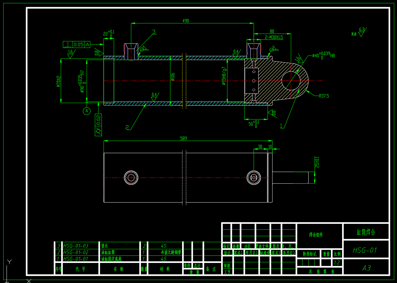 本文设计的是一种新型的HSG工程用液压缸,这种HSG型工程液压油缸是双作用单活塞杆、耳环安装型液压油缸,主要用于工程机械中,本文主要对这种油缸展开以下设计:油缸的型号意义和技术性能分析、油缸结构形式设计、油缸主要零件的工艺分析、油缸的三维设计、油缸的二维设计、油缸参数的计算等。这种油缸可以说在这种重型机械中非常实用,同时能应对恶劣的环境,应用广泛,对于此类型的油缸的研发设计及工艺分析是非常必要的,这种专用工程油缸的全新设计、全新优化是市场急需的,对于现如今工程作业日益剧增的需求的一个现实的研发支持。市场需求的增加、技术研发的迫切需求使得这种HSG工程用液压缸的研究设计及其工艺分析是必要的,这种油缸的设计研发有着广阔的前景。参数如下:工作最大负载F:97000N(查阅标准。推力范围:70360N-101790N),油缸公称压力P:16MPa,缸筒内径D:90mm,缸筒外径D1:106mm,缸杆直径d:63mm,油缸行程L:400mm。