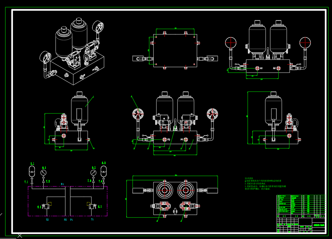 分析现在市场上各类挖掘机的液压系统,了解挖掘机的各个动作原理,如:动臂升降、斗杆收放、铲斗装卸、底座回转与整机行走等功能油路。对于每个功能进行分析油路,同时对于负载进行计算,受力分析,得出系统的工作压力,再根据工作压力计算出油缸的基本参数,同时针对油缸的动作速度所需流量进而评估整个系统的系统流量,根据系统所需压力流量进行泵的计算选型、马达的计算选型、电机计算选型,油箱体积计算,各类液压控制元件的选型等工作。进行三维设计泵站,二维对于阀块、集成块、油箱和泵站进行设计。
