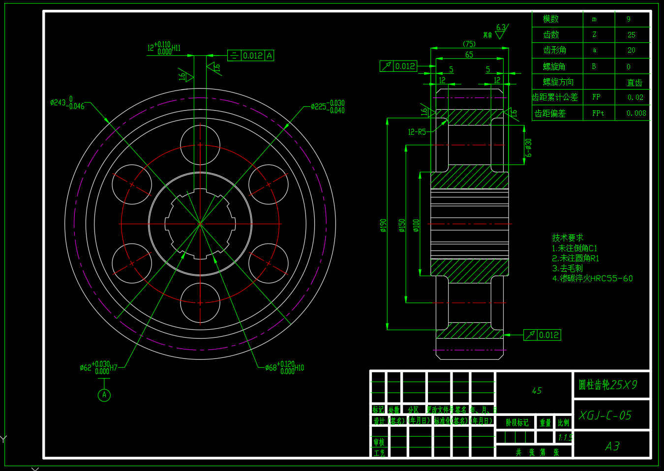 包含二维CAD(齿轮箱装配图,箱体零件图,齿轮零件图,轴零件图,机构运动简图),包含三维SW2020全部零部件以及装配。基本参数:配套动力:50马力(36.8kw,1kw=1.36马力进行换算),拖拉机输出转速:540r/min ,旋耕机幅宽:2.5m,传动系统输入功率:50KW,传动系统输入转速:540r/min,传动系统输出转速:270r/min(180r/min-300r/min)。