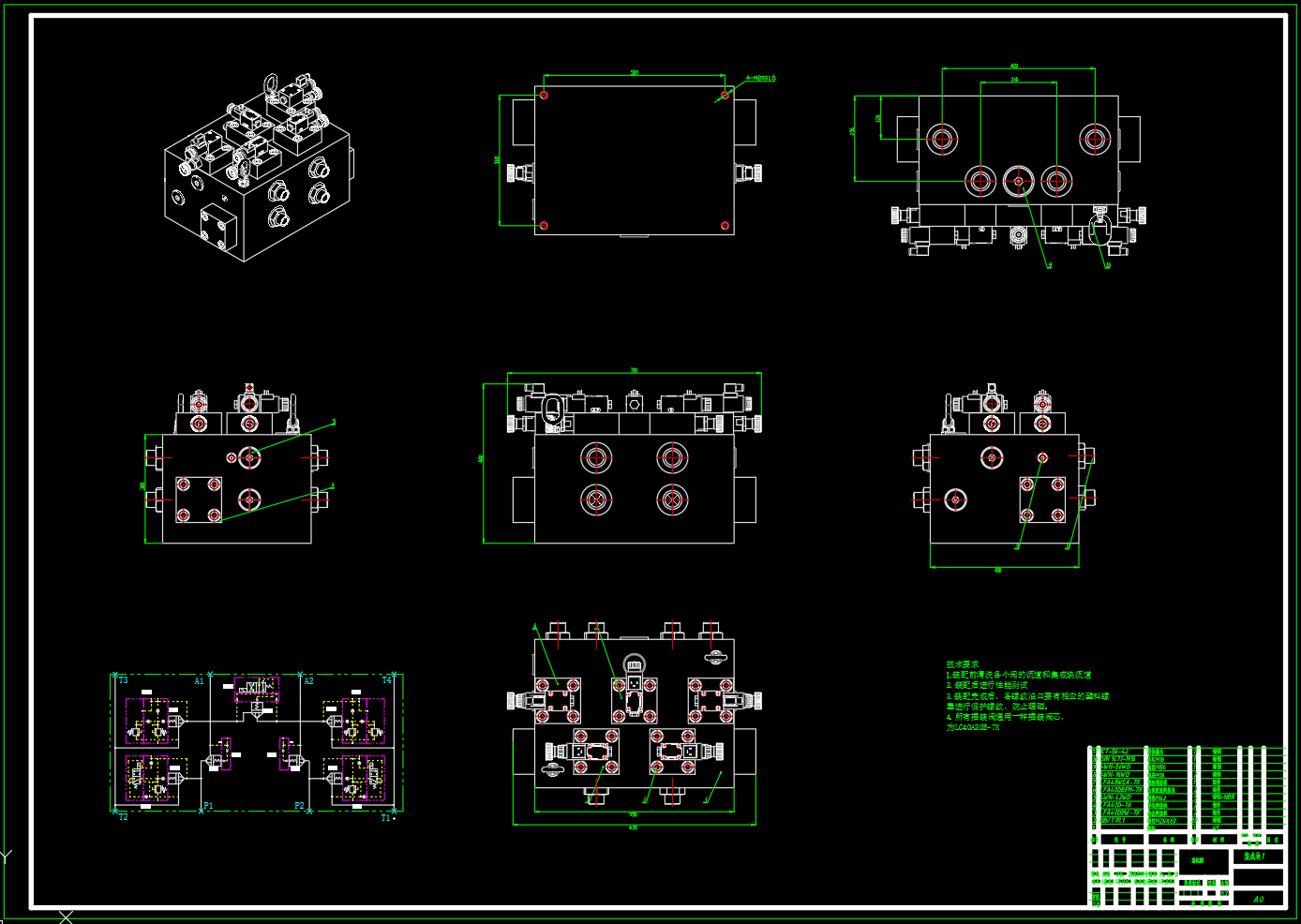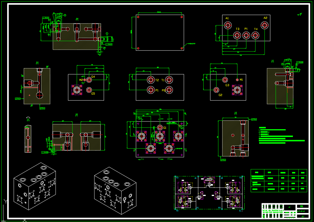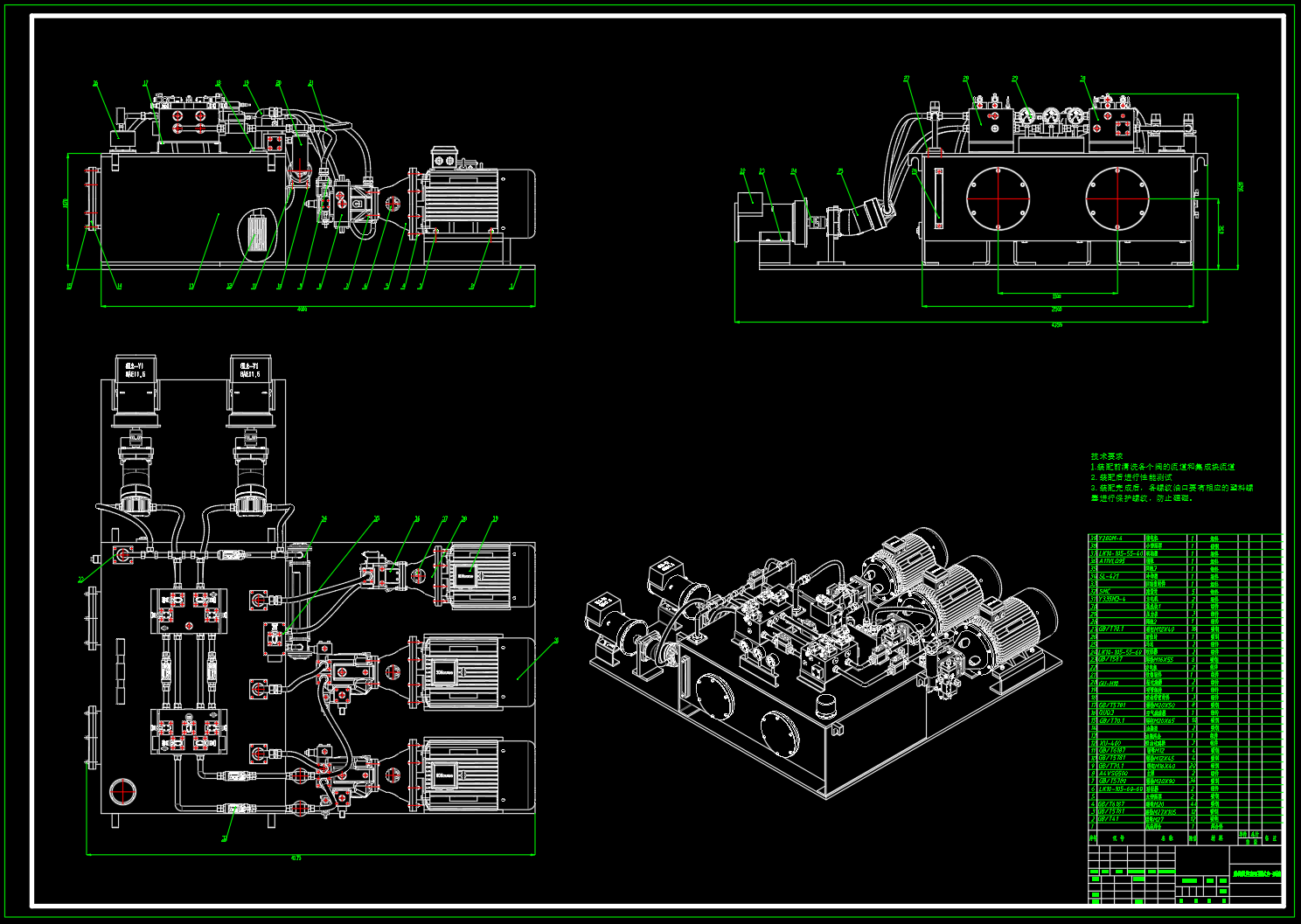 包含二维CAD(液压系统原理图,泵站装配图,油箱焊合图,阀块零件图,集成块装配图),包含三维SW2018零部件及装配。实现测试项目包括:排量验证试验、效率试验、变量特性试验、自吸试验、噪声试验、低温试验、高温试验、超速试验、超载试验、冲击试验、满载试验、效率检查试验及外渗漏检查试验等。