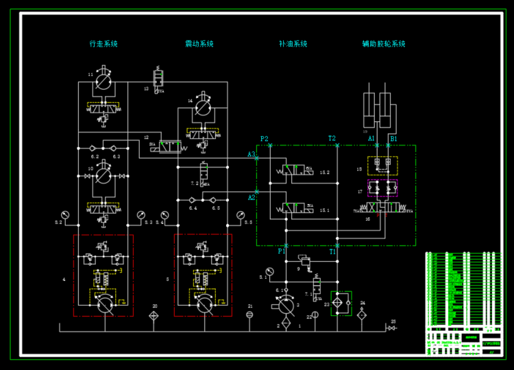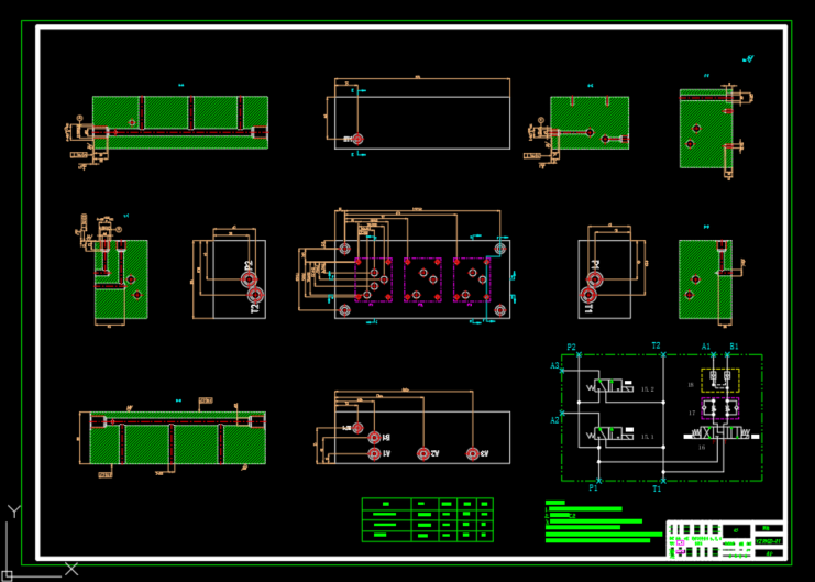 包含二维CAD(液压系统原理图,阀块零件图),包含SW2018三维(集成块三维,阀块三维),整个液压系统由行走系统,震动系统,合流系统和补油系统组成。
