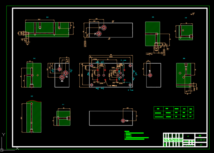 包含二维CAD图纸(液压系统原理图,阀块零件图,集成块装配图),包含集成块装配SW2016和阀块三维,设计一种粮仓料斗回转机构的液压系统,回转用液压马达进行实现,通过设计一套液压控制系统实现了回转机构的正反向回转。