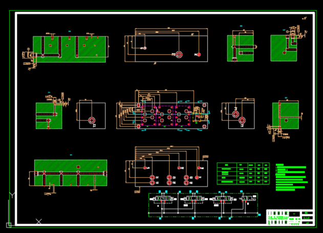 包含液压系统原理图,阀块零件图,包含三维SW2018集成阀组装配,阀块零件, 提梁机是一种为桥梁建设而专门设计的一种门式起重机。提梁机主要由拼装式主梁、支腿、天车等组成,构件间采用销轴及高强螺栓连接,易于拆装、运输;与普通门式起重机相比,安装方便快捷,经济实用。适用于经常流动的道路桥梁建设单位。 目前,国内高速铁路建设市场繁荣,随着高铁工程施工进度的不断推进,对各种高技术含量与高性能工程机械设备的需求日益增大。900t提梁机运用特别广泛,主要用于铁路 客运专线双线整孔32m、24m、20m箱梁在路基、桥梁、隧道、梁场的提升安装等工作。 900T提梁机中液压起着关键性作用,用来实现机械的基本动作,其中用到了集成阀组,是液压行业中现在新兴的一种单元组件,因为他有着体积小、重量轻、功能强、成本低等特性,不断地被设计研究应用到现实的液压系统中,起着至关重要的作用。液压集成阀组是由一个阀块根据液压原理油路进行加工不同的流道,实现一个底座功能,再配装上各种控制阀,从而实现了一个系统单元组,大大的节省了空间和成本,提高了性能,方便用户。 本文介绍的是一种900T提梁机液压系统设计以及集成阀组的设计,从液压原理图的确定,到根据原理及基本参数确定液压集成块的阀块流道设计,安装设计,再到各种控制阀的选配和安装,最终实现了所需功能的集成阀组以及实现各个动作的液压系统。