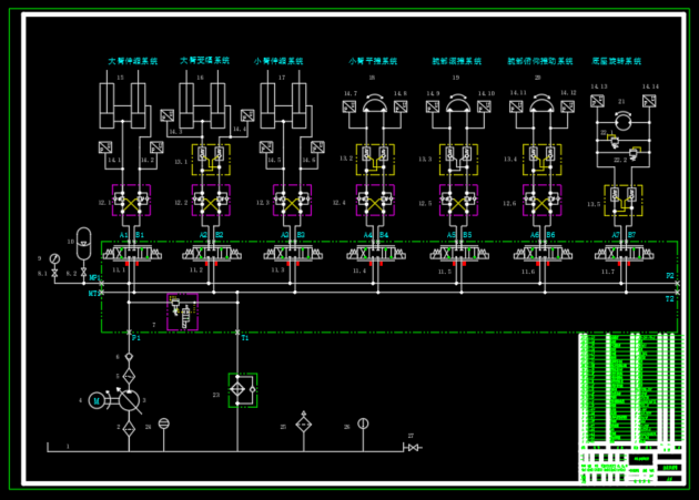 包含二维CAD,液压系统原理图,阀块零件图,集成块装配图,SW2018集成块,论文,开题报告等。 本文设计研究主要展开以下设计内容:对于液压系统方面展开基本功能动作的确定,根据功能和工况分析设计满足执行机构要求的液压系统原理图,液压系统控制元件采用电液伺服控制,整个液压系统设置缓冲回路和卸油回路,与此同时对于重载机械臂的支路设置保压回路,很好的满足整个机器的动作要求。采用集成块形式集中控制,解决了液压系统中的油箱大、能耗高、效率低、系统功率损耗过大、系统发热较多容易损坏元件的问题。详细的进行了液压系统原理图的设计及绘制、液压系统参数的计算、液压元件的选型、能量损失验算、热平衡验算、油箱设计、集成块设计、油缸的设计等。