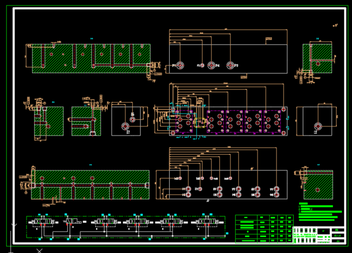 包含液压系统原理图,阀块零件图,阀块集成块三维图,SW2016,设计说明。 本文介绍的是一种900T架桥机液压系统设计以及集成阀组的设计,从液压原理图的确定,到根据原理及基本参数确定液压集成块的阀块流道设计,安装设计,再到各种控制阀的选配和安装,最终实现了所需功能的集成阀组以及实现各个动作的液压系统。
