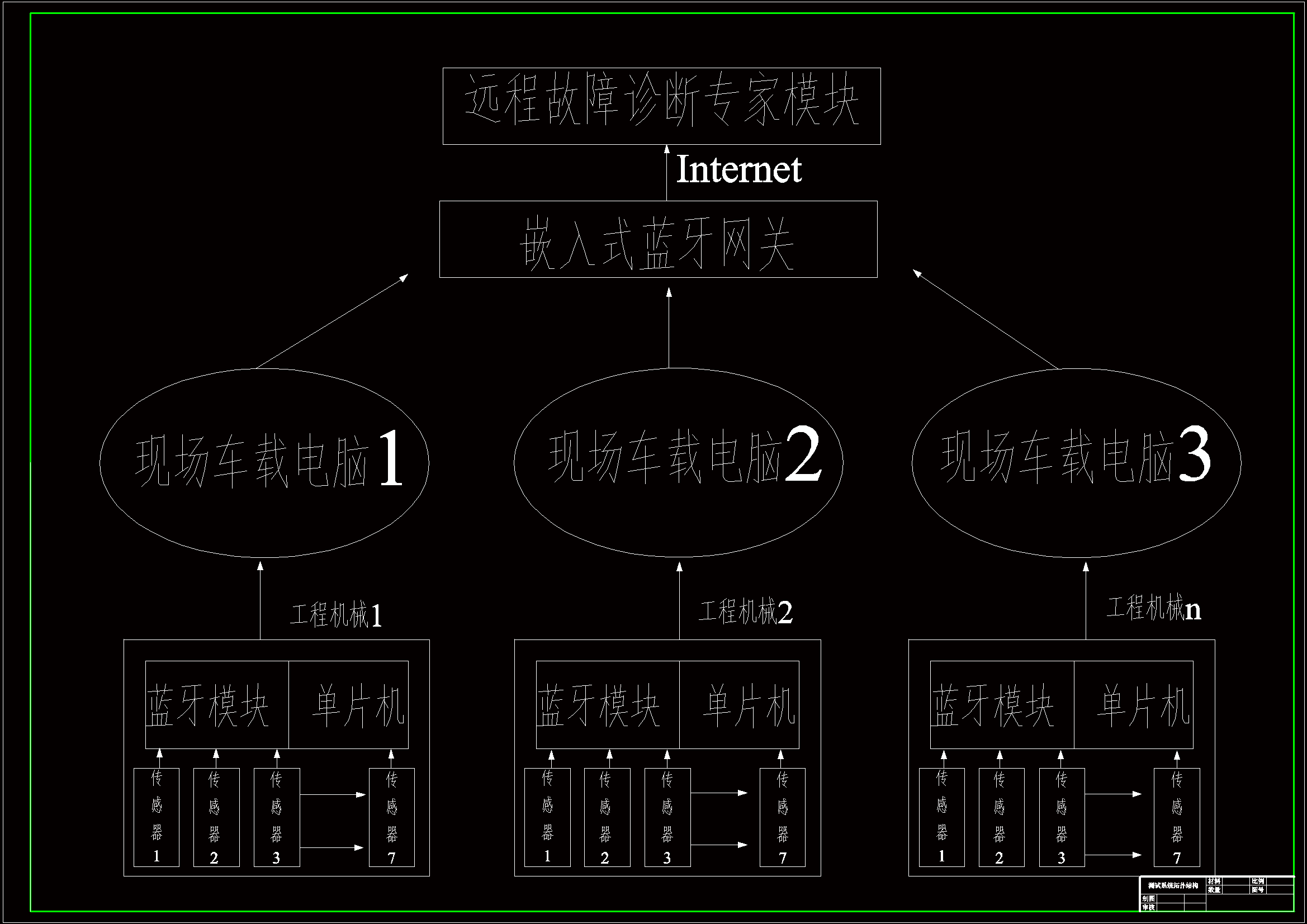 该课题研究采用蓝牙技术进行无线通信,利用蓝牙芯片可对各传感器采集的数据进行无电缆可靠传输,使工程机械检测系统与外部网络的连接不受通信线路及地区限制,使用更方便、更安全。设备无需布线便可安装于现有环境,减少系统的维护费用。