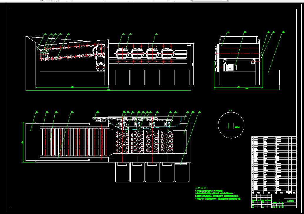 本次设计的土豆筛选机由倾斜向上放置的输送机构和多滚筒式分级筛选机构两部分组成。输送机构能够将土豆运输到分级筛选机构,倾斜向上能避免在输送土豆过程中土豆发生堆积;分级筛选机构能够将不同大小尺寸的土豆筛选出来,多滚筒式的结构便于设备的维护及降低维修成本。本设备致力实现土豆分级筛选的自动化,及提高土豆分级筛选的精准性。
