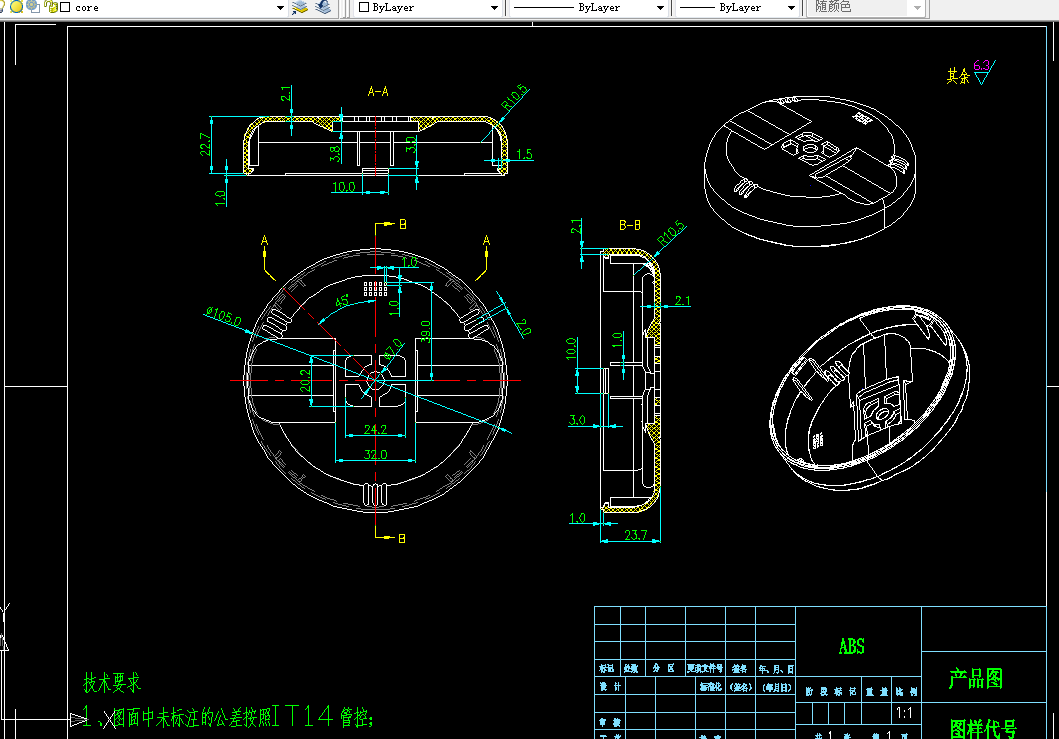 塑料是一种高合成分子材料,塑料的特点具体的有:重量轻且还坚固,有较好的耐化学腐蚀性,还有很好的电绝缘性,价格相对来说很便宜,且具有很好的可塑性。在现在的生活中塑料是一种不可缺的产品,现在人们常用的手机、电脑、汽车、家用电器等产品都需要用到塑料制品。塑件成型的方法有很多种,注塑成型只是其中一种。本次设计用到的就是注塑成型法,注塑成型就是利用注塑机将热塑料溶体在高速的条件下注射到模具中去,再经过冷却固化获得产品。注射具有许多优点,例如:生产的效率很高,速度很快,可执行自动化操作,还可以成型形状复杂的零件,可以大量生产产品。 本次设计的零件是蚊香盖,特点是:重量很轻,强度很高,具有较好的耐腐蚀性,需要大批量生产。此次设计要先对零件进行工艺可行性分析,再选择注塑机,模架。然后再确定各零件尺寸,进一步设计型腔、型芯、浇注系统、脱模系统等。本次设计主要用UG绘制三维图,采用CAD来制作装配零件图。