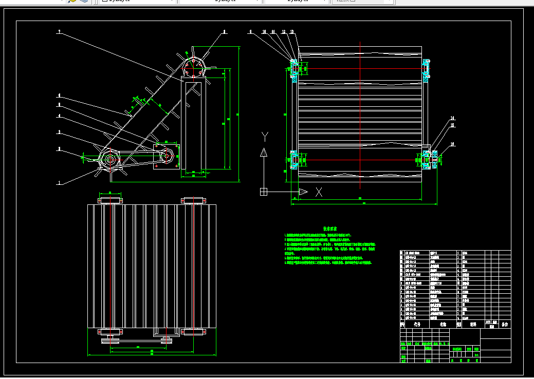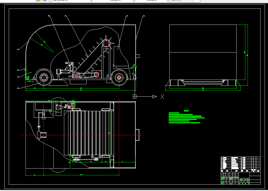(3)利用二维绘图软件Auto CAD绘制落叶清扫车整体结构的装配图,分别绘制三大机构的总体结构装配图,绘制主要零件的工程图,利用图纸展现所设计落叶清扫车的细致参数,便于研究计算。利用三维绘图软件solidworks对设备总体三维模型进行绘制,更加直观的展现出落叶清扫车的总体结构和设计思路。