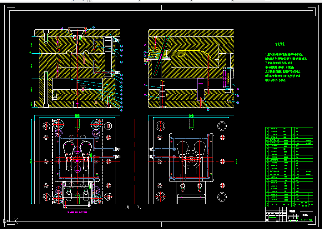 本说明书是对喷头进行的设计与分析,本设计主要运用了ug软件,设计出了一个一模两腔的手机注塑模具,这样方便大批量生产。其中设计也包括成型零件的设计、浇注系统的设计、推出机构的设计、排气系统的设计、侧抽结构等内容。然后在通过对模具型芯、型腔、拉料杆等相关主要部件尺寸的计算完成注塑模具总装图和非标零件图的绘制。