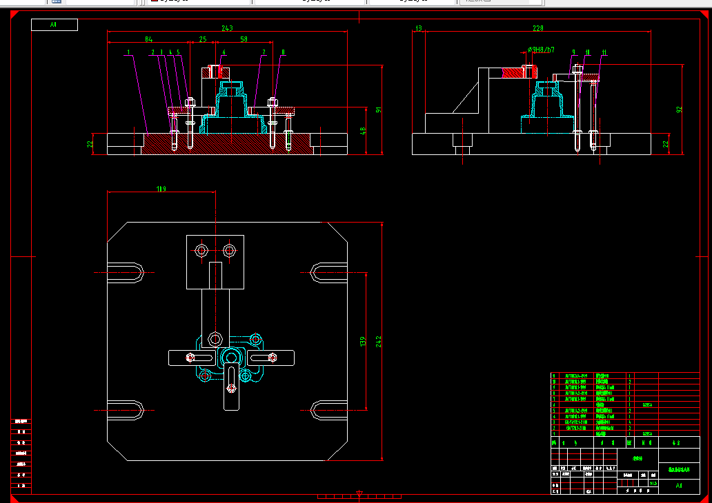 本次设计的主要内容是操纵盖加工工艺规程及 孔钻孔夹具的设计。操纵盖主要是用在汽车变速器上面,其主要加工表面及控制位置为长度为97的底部大端面和 以及 。由零件要求分析可知,保证 孔的精度尺寸的同时应该尽量保证其与底部大端面的垂直度,这对于后工序装配和总成使用上来说都有重要影响。所以,工序安排时,采取以97的底部大端面粗定位夹紧加工后,对 孔进行钻削加工同时成型。因其粗糙度为Ra12.5,可通过钻、绞孔来满足。对于钻 孔时,主要以操纵盖的97的底部大端面定位,控制其自由度,以达到加工出来的产品满足要求并且一致性好的目的。本文的研究重点在于通过对操纵盖的工艺性和力学性能分析,对加工工艺进行合理分析,选择确定合理的毛坯、加工方式、设计高效、省力的夹具,通过实践验证,最终加工出合格的操纵盖零件。