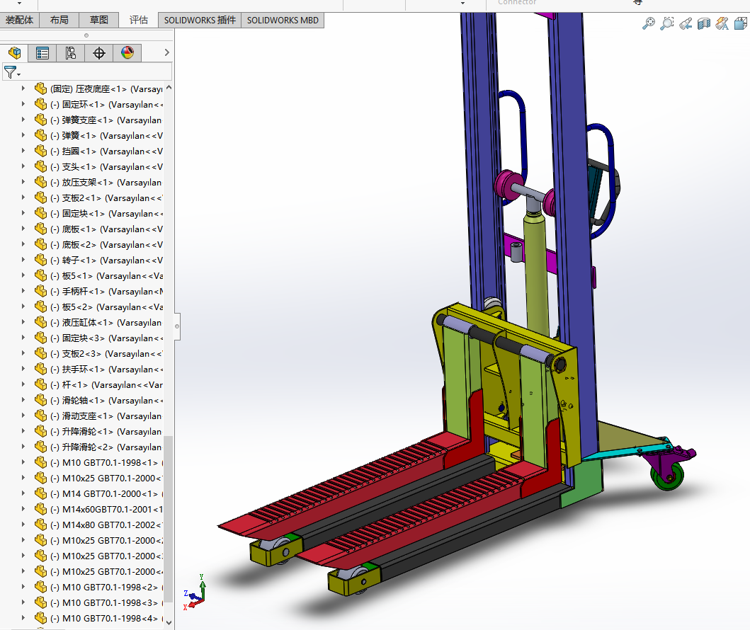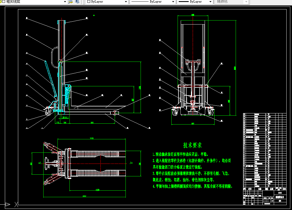 在设计上,通过查阅相关的设计文献,了解油桶搬运车在结构形式上的要求和结构的整体原理要求,满足的基本设计结构形式要求。达到对油桶高效率的托举的作用,实现在卡勾等结构上的设计,满足油桶的摆放和固定,提高托举装置的摩擦力,实现不易出现滑动等设计优点。在整个的设计上,对整体结构方案进行构思,对支架等结构形式进行设计,确定油桶搬运车的大体结构尺寸,再进行液压传动结构的设计,实现液压提升和下降的过程。更好的实现对油桶搬运上的稳定性和可靠性。避免出现搬运过程中倾倒等情况,对液压系统的传动进行计算和校核,完成整体结构形式的建模设计和二维结构设计,关键零部件的结构设计,绘制相关的设计图纸。提高油桶搬运的便捷性和生活工业上的实用性要求。设计的操作结构上,要实现结构简单,操作系统灵活耐用,运行的动作准确和生产效率较高的特点,更好的实现本次在油桶搬运车上的性能可靠性。